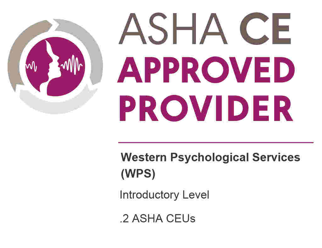 ASHA CE Provider approval and use of the Brand Block does not imply endorsement of course content, specific products, or clinical procedures.